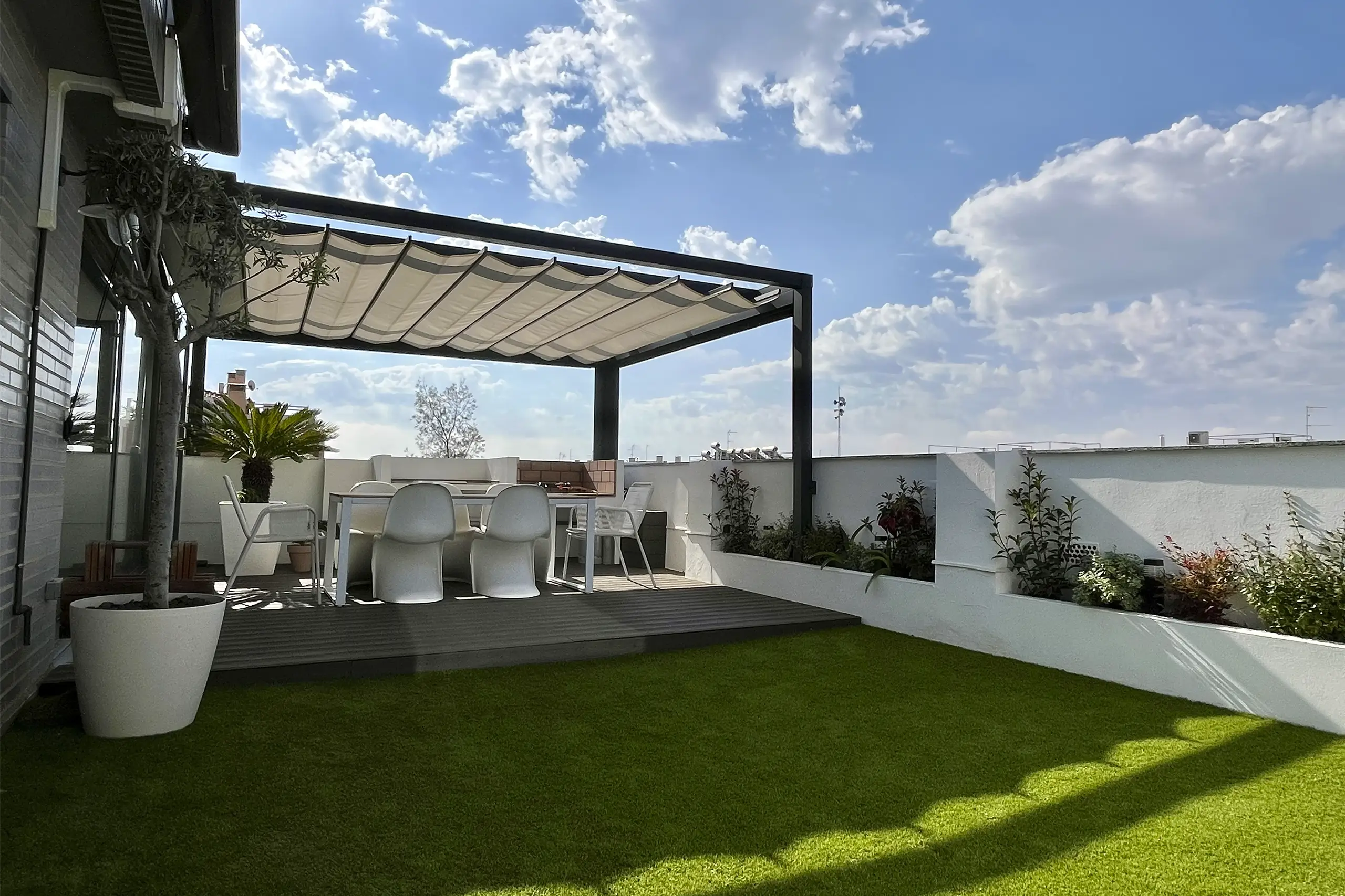 Nuestra misión es sencilla: ayudar a nuestros clientes a recuperar sus espacios exteriores, transformando terrazas, jardines y fachadas en lugares confortables, eficientes y con un diseño impecable durante los 365 días del año.